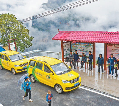 6月30日,兩輛四川鄉(xiāng)村客運面包車在阿布洛哈村等待乘客。新華社記者 江宏景攝