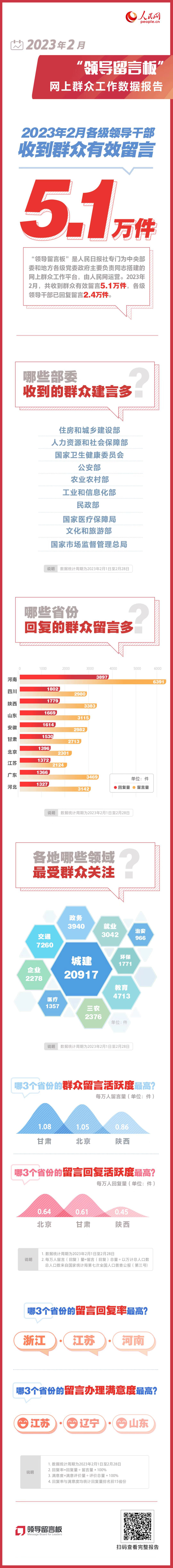 “領(lǐng)導(dǎo)留言板”月度數(shù)據(jù)報(bào)告:2月,各級(jí)領(lǐng)導(dǎo)干部收到群眾有效留言5.1萬(wàn)件