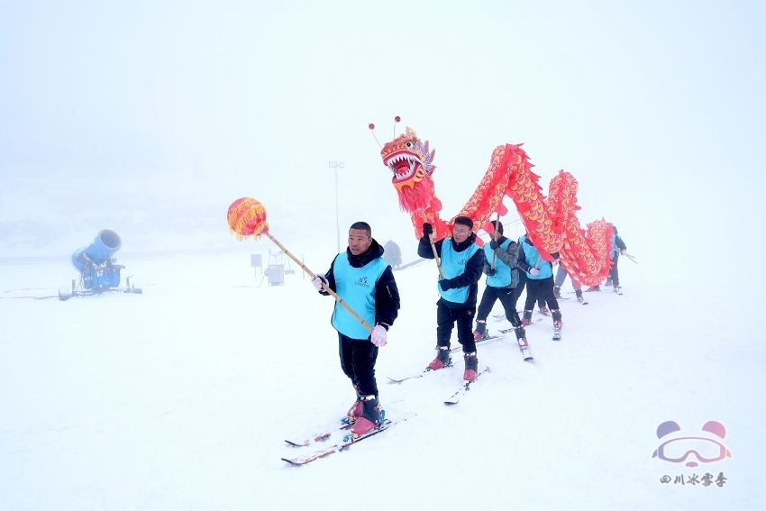 工作人員在巴山大峽谷滑雪場(chǎng)進(jìn)行舞龍表演。四川省體育局供圖