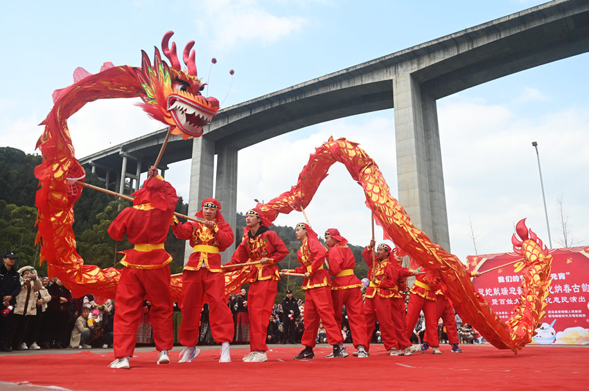 “正月里來(lái)正月正,正月里來(lái)耍龍燈,龍燈今來(lái)朝賀你,同慶中華九州春。”在指導(dǎo)老師卓永泉的吉祥語(yǔ)中,歷經(jīng)一個(gè)寒假的集訓(xùn),“小虎隊(duì)”正式登臺(tái)獻(xiàn)藝。他們扛著一紅一金兩條大龍,與新場(chǎng)鎮(zhèn)女子舞龍隊(duì)配合默契,時(shí)而翻江倒海,時(shí)而騰空而起,為新場(chǎng)鎮(zhèn)傳承600多年的“翔龍節(jié)”注入了新鮮血液,也為全場(chǎng)數(shù)千名觀眾帶來(lái)了一場(chǎng)視覺(jué)盛宴。(彭茜、代勇、黃正華、鄒穎)