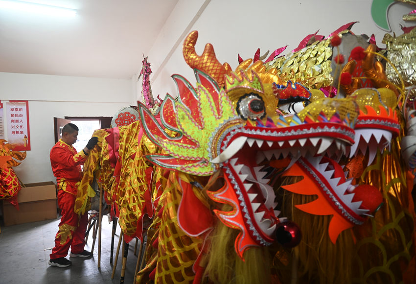 “看到隊(duì)伍里大多是生龍活虎的年輕人,我特意將舞龍隊(duì)命名為‘小虎隊(duì)’。在兩位老師的帶領(lǐng)下,我們上下一心,為傳承龍的精神不斷努力?!睏罟廨x說(shuō)。