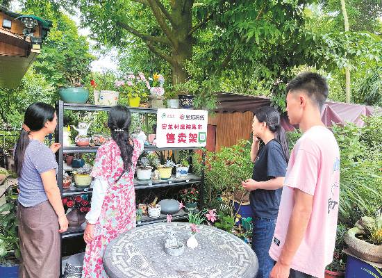 安龍村創(chuàng)新推出“庭院經濟”模式,引導村民將房前屋后的閑置空間改造成盆景展示區(qū),既美化了人居環(huán)境,又打造出“處處是景、戶戶可購”的沉浸式消費場景。