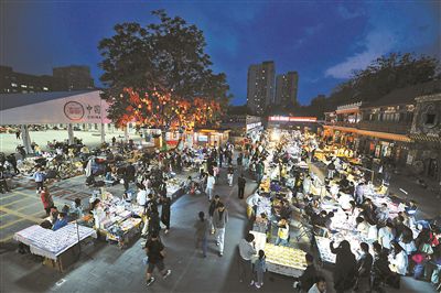 華燈初上,北京潘家園舊貨市場(chǎng)的夜市逐漸熱鬧起來。隨著周六非遺主題夜市的正式開放,潘家園實(shí)現(xiàn)了“全年365天每天開市,每周三、五、六都有夜市”的運(yùn)營(yíng)新模式。這個(gè)曾經(jīng)以古玩交易聞名的地方,如今為何能吸引大量年輕人的目光,成為爭(zhēng)相打卡的時(shí)尚地標(biāo)?北京青年報(bào)記者日前進(jìn)行了探訪。