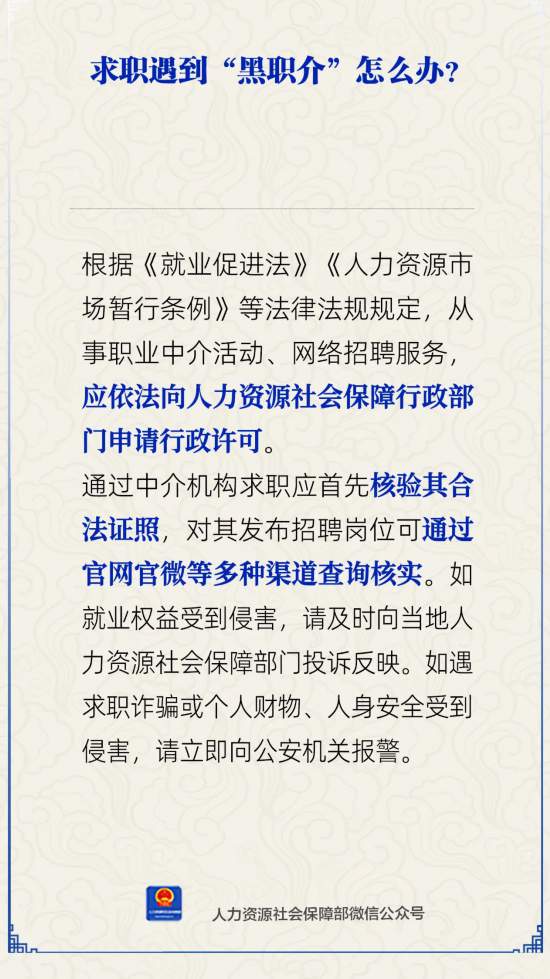 求職遇到“黑職介”怎么辦?人社部30日通過官方微信公眾號(hào)作出解答。