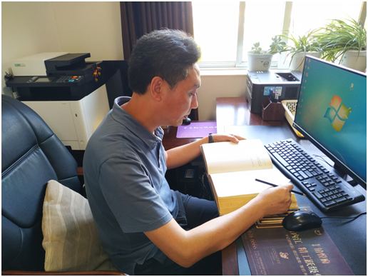 內(nèi)江市市中區(qū)地方志研究室主任翁得志查尋考證抗戰(zhàn)期間該區(qū)的糖業(yè)情況。內(nèi)江市委黨史地方志研究室供圖