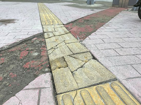 調(diào)查中,一些市民反映稱,匆忙行走中,難免未留意到破損或松動的地磚,被濺射臟水后不僅會影響心情,還存在安全隱患,特別是有的盲道上也存在破損地磚失檢失修的情況。