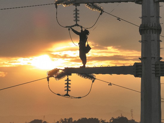 “注意系好安全帶,腳下要踩穩(wěn)!”7月29日晚上8時(shí),熱浪還未退去,在成都市蒲江縣110千伏天華變電站35千伏配套線路工程現(xiàn)場(chǎng),地面上的工作負(fù)責(zé)人用對(duì)講機(jī)向塔上施工人員叮囑道。新建的鐵塔浸在夕陽的“熔金”里顯得格外耀眼,鋼鐵骨架的棱角被“鍍”得發(fā)亮。