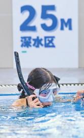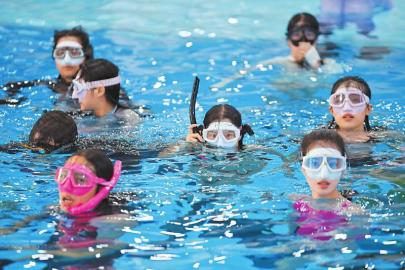 7月26日,在成都一家潛水俱樂部淺水區(qū)練習(xí)潛水的學(xué)員大多是女性。