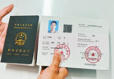 8月1日,潛水教練蘇燦潮向記者展示他的潛水教練證件。