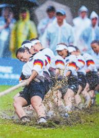 8月10日,成都世運(yùn)會(huì)賽事競(jìng)技正酣。盡管東安湖體育公園中央廣場(chǎng)大雨滂沱,女子室外拔河500公斤級(jí)決賽卻將現(xiàn)場(chǎng)氣氛推向高潮——8人一隊(duì)緊握周長(zhǎng)12.5厘米的專(zhuān)業(yè)麻繩,腳蹬草地專(zhuān)用戰(zhàn)靴,力量、戰(zhàn)術(shù)與意志在泥濘中激烈碰撞。觀眾的吶喊如潮,這項(xiàng)古老運(yùn)動(dòng)迸發(fā)出全新活力。