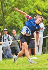 8月8日,奧地利運(yùn)動(dòng)員在飛盤(pán)比賽中奮力一擲。