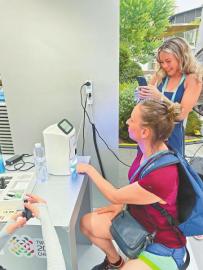 運(yùn)動(dòng)員體驗(yàn)美甲機(jī)器人。成都市科技局供圖