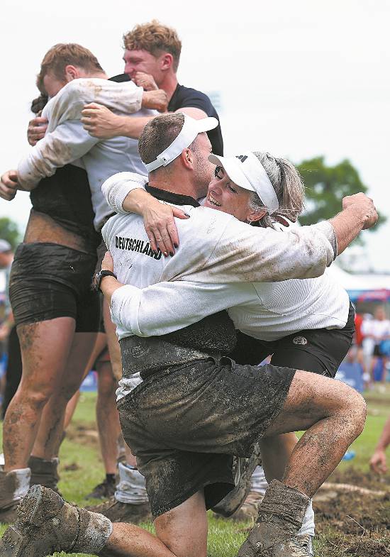 拔河比賽后,慶祝勝利的德國(guó)運(yùn)動(dòng)員們。