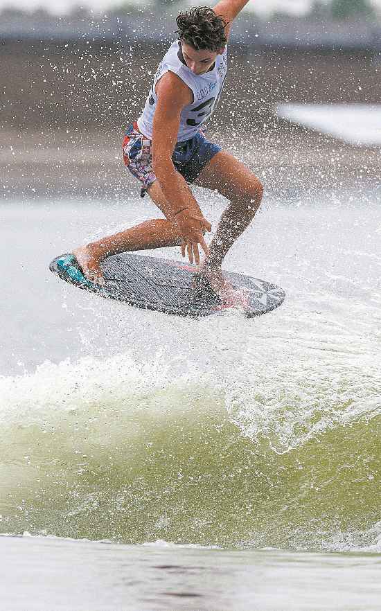 美國(guó)選手在滑水男子尾波沖浪沙板風(fēng)格決賽中。