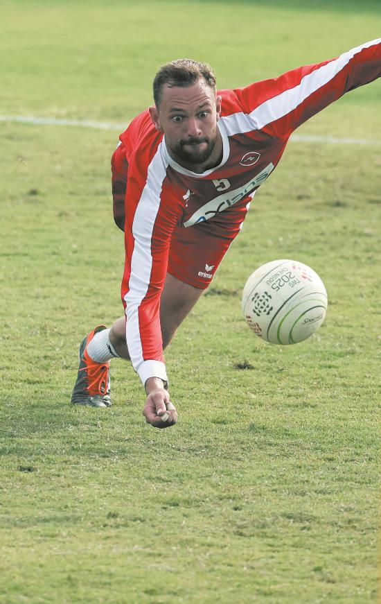瑞士對(duì)陣巴西浮士德球比賽中,瑞士隊(duì)員飛躍救球。