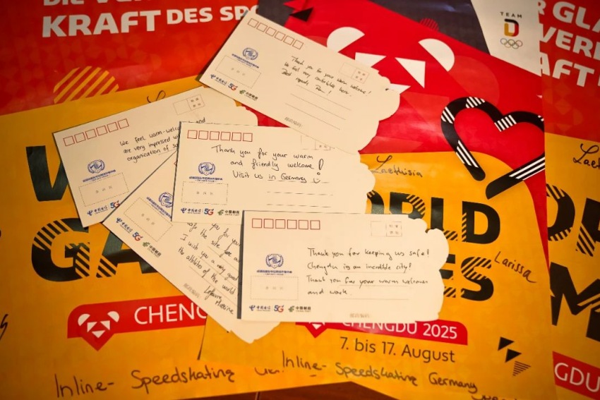 臨別之際,Anna、Lefeuvre和她們的隊(duì)友們緊握這份來自天府之國的祝福,分別在警務(wù)站的明信片上留下她們對中國、對成都、對中國警察的滾燙心聲——警燈閃爍處,職業(yè)精神已悄然架起一座無形的友誼橋梁。