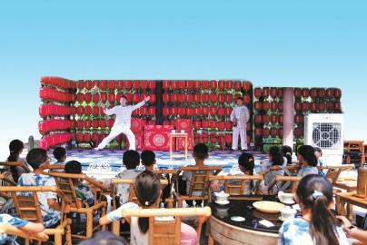 目前鶴鳴茶社推出川劇變臉、講解蓋碗茶文化的天津味評書以及長嘴壺茶藝秀等演出?!爸灰谶@兒喝茶,這些節(jié)目都隨便看?!弊T逭f,除每晚8點上演的《鶴鳴傳奇》和長嘴壺一對一表演外,茶社舞臺處的演出都面向所有消費者免費開放。