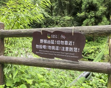 記者注意到,景區(qū)內(nèi)確實設有告示牌,寫有“野猴兇猛!切勿靠近!”“認識藏酋猴,遠離藏酋猴”等內(nèi)容。此外,景區(qū)門口有喇叭循環(huán)播放“請大家不要挑逗、遠離猴群”。