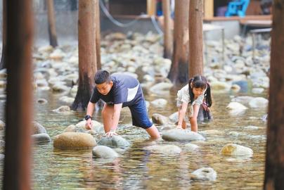 小朋友在剛上新的“森林水鄉(xiāng)”項(xiàng)目抓魚抓螃蟹。四川日?qǐng)?bào)全媒體記者 李強(qiáng) 攝